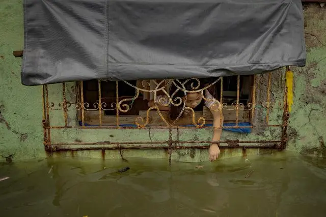 当地时间2025年8月9日,菲律宾哈戈诺伊(Hagonoy)蒂巴瓜因岛(Tibaguin Island),一名女孩望向家中部分被海水淹没的窗外(水位因潮水上升而上涨)。在菲律宾的沿海社区,多年来海水持续上升——这种缓慢但无情的侵蚀源自南极冰层融化、长期无节制抽取地下水导致地面下沉,以及全球变暖引发的海洋膨胀。视觉中国 图