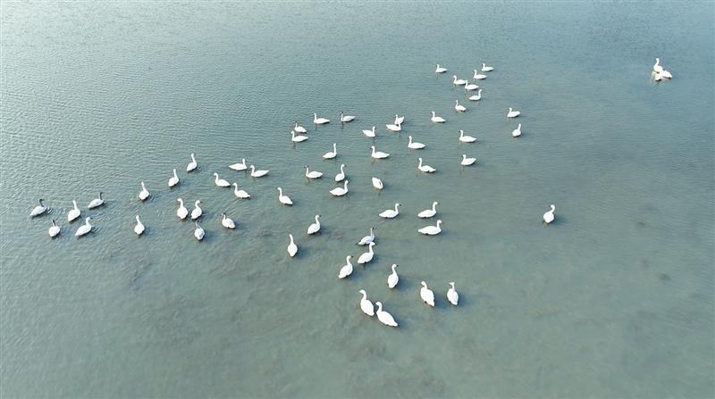 “最初只有两三只,现在已经有四五十只了,真是让人满心欢喜。”在滆湖开阔的湖面上,看到成群的天鹅结伴游弋,村民王清松抑制不住内心的喜悦。这批“新客人”的到访,是宜兴久久为功构建滆湖生态圈的生动注脚,更是太湖治理成效的有力见证。