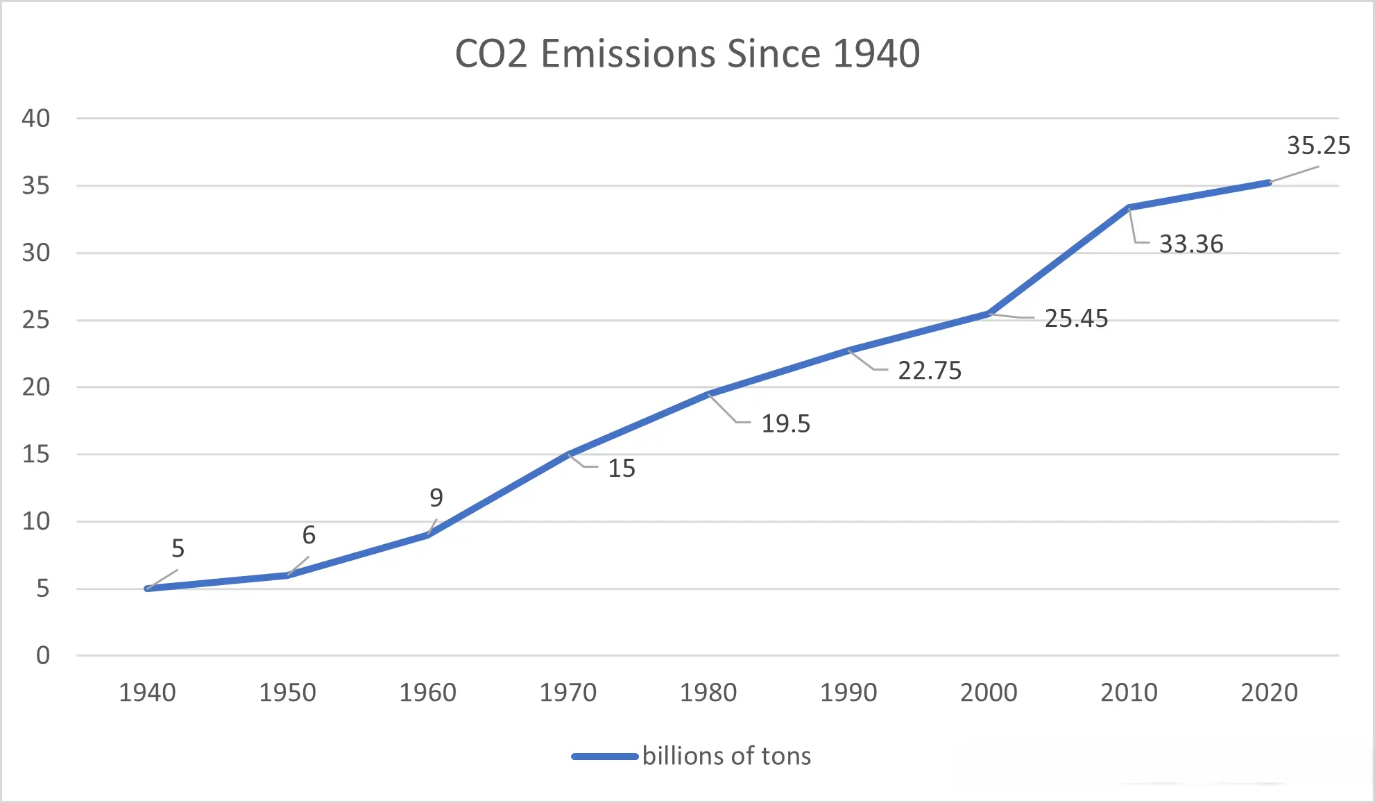 从那时起,排放量不断加速。到2020年,二氧化碳排放量已攀升至每年350亿吨。