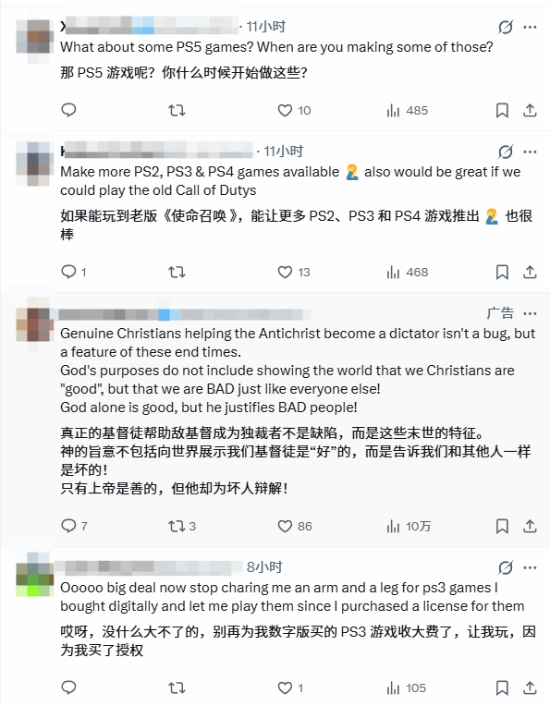 也有玩家指出 PS5 上市超 5 年,独占大作数量少、多数作品跨 PS4 平台,强调向下兼容反而凸显原生游戏阵容薄弱的问题。