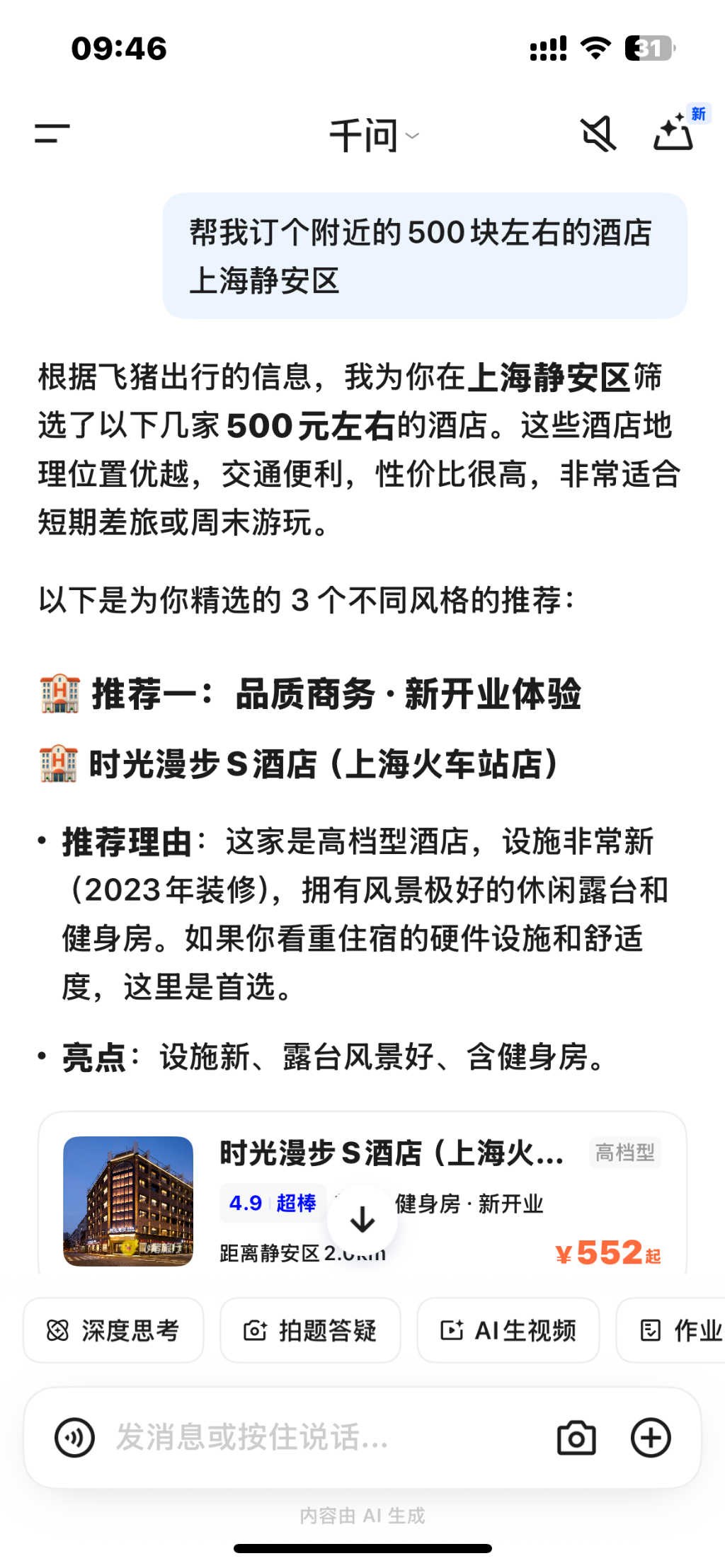 华尔街见闻实测发现,在千问APP对话框里,用户已经可以直接点外卖、订机票、订酒店、找餐厅,甚至办理政务。