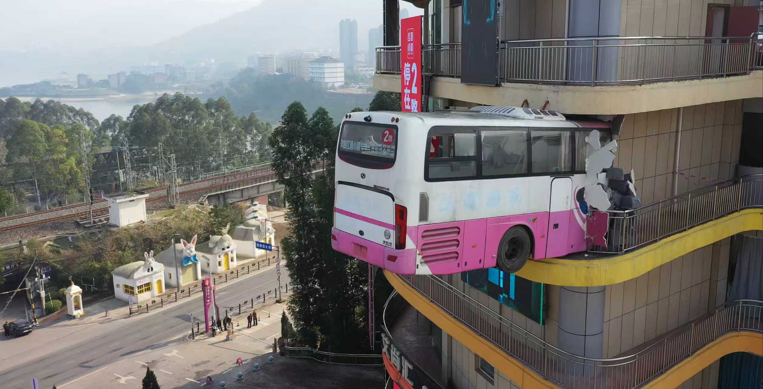 刀郎歌里那句“停在八楼的2路汽车”如今真的被“挂”上了墙。日前,重庆涪陵美心红酒小镇景区内,一辆通体鲜红的大巴车车尾被精准嵌入8楼建筑外墙面,车身与墙体无缝衔接,仿佛下一秒便要穿墙而过,极具视觉张