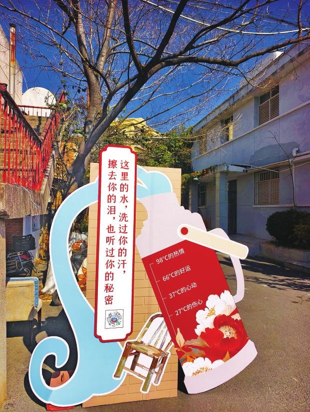 在浴室旁边,记者遇到了一位正在拍照打卡的女士。经询问,她是云大92级的校友,曾经住在这里。当记者指着理发店上面的建筑询问时,这位女士回忆道,那里就是当年给“交际舞扫盲班”跳舞的地方。那时候学校专门为不会跳舞的男女同学开设交谊舞课,大家在这里学三步、四步和华尔兹。这位校友表示,没想到这栋承载了“70后”青春的20世纪90年代初建成的“跳舞楼”至今还在。