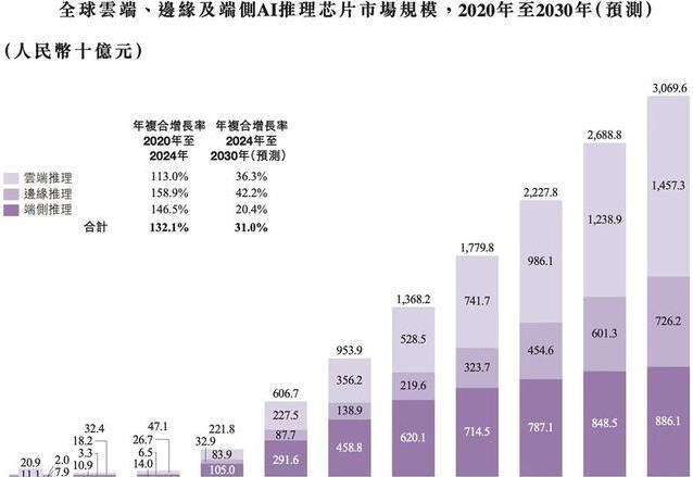 边缘人工智能推理业务增长势头也很猛。2023年推出的专用芯片系列,2024年出货量从前一年的2.1万颗跳到超过10万颗,增长超过四倍。这款芯片算力达到72万亿次每秒,在智慧城市、工业自动化等分布式场景中表现突出。根据灼识咨询报告,2024年公司在国内边缘人工智能推理芯片市场位居第三,占有12.2%的份额。