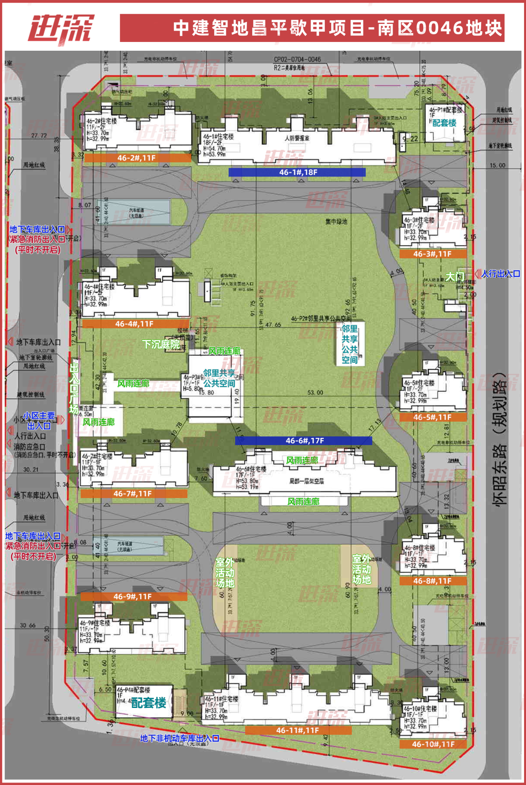 东侧为2幅住宅地块:北区0038、南区0046地块,计容地上建面9.13万㎡。