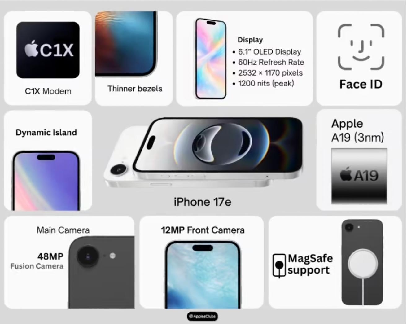 外观设计上,该机背部预计延续单摄像头布局,屏幕顶部仍保留「刘海」造型,此前传闻的灵动岛功能升级或需再等一两代才会下放至e系列机型,目前仍以迭代优化为主。