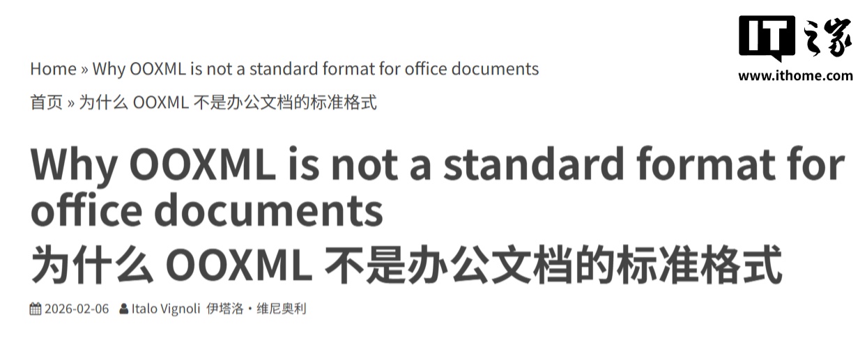 IT之家 2 月 10 日消息,开源办公套件 LibreOffice 背后机构文档基金会(TDF)于 2 月 6 日发布博文,再次抨击微软公司,指责其 OOXML 文档格式将商业利益置于技术标准之上,通过人为制造复杂性裹挟用户。 TDF 创始成员 Italo