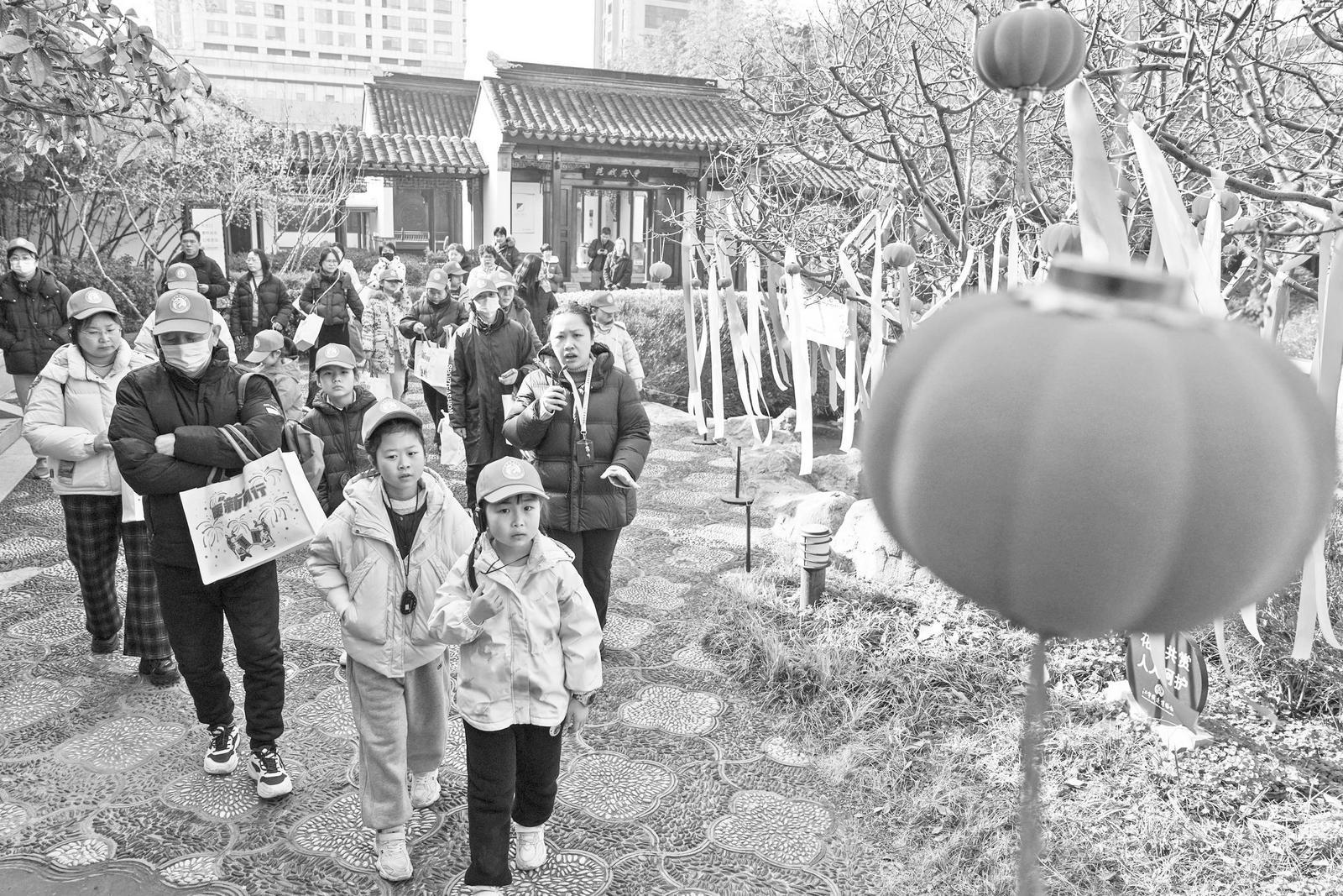 2月12日,新就业群体子女代表在江宁织造博物馆内参观。