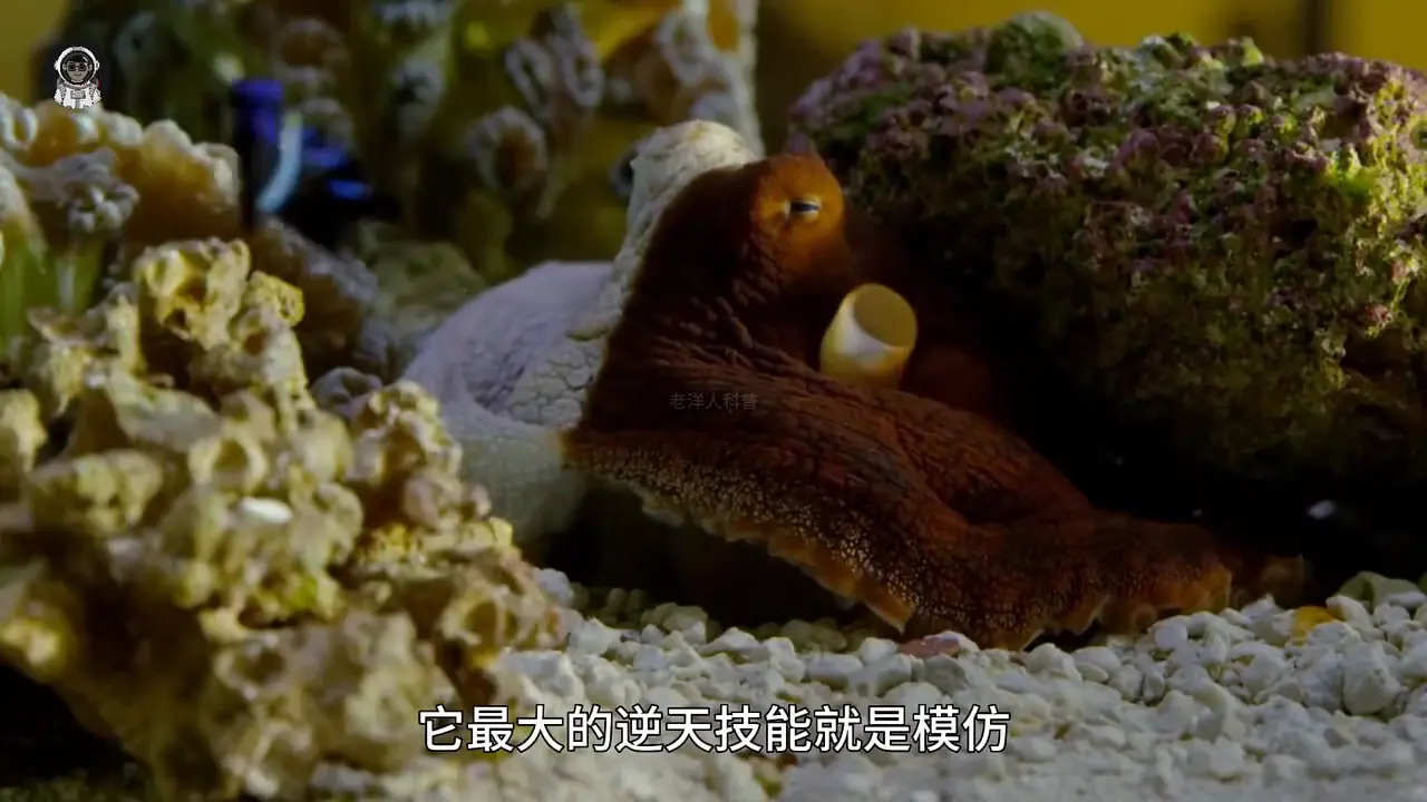 章鱼除了可以逃出人类的控制外,它们也能利用废弃的椰子壳建造庇护所。不过这些都不是它最厉害的本领,它最大的逆天技能就是模仿。章鱼能在一瞬间伪装成有毒的鱼或蛇来迷惑捕食者,这些逆天的骚操作也让科学家一度怀疑章鱼并不是地球上的生物。