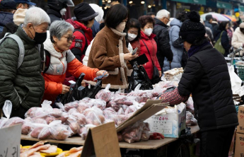 2月12日,人们在韩国首尔一家市场进行春节前采购。新华社发