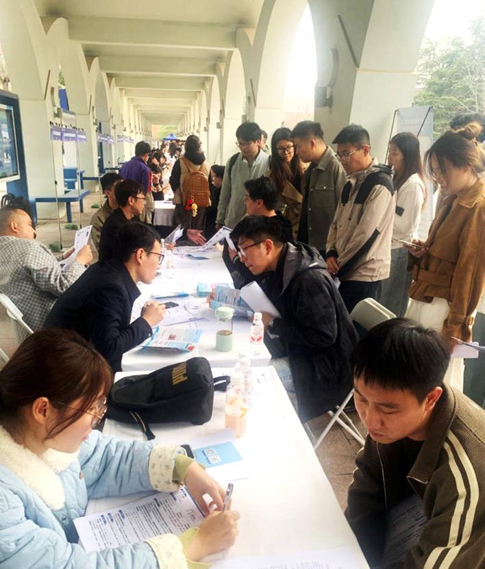 学子们踊跃和企业对接。 马惠敏 摄