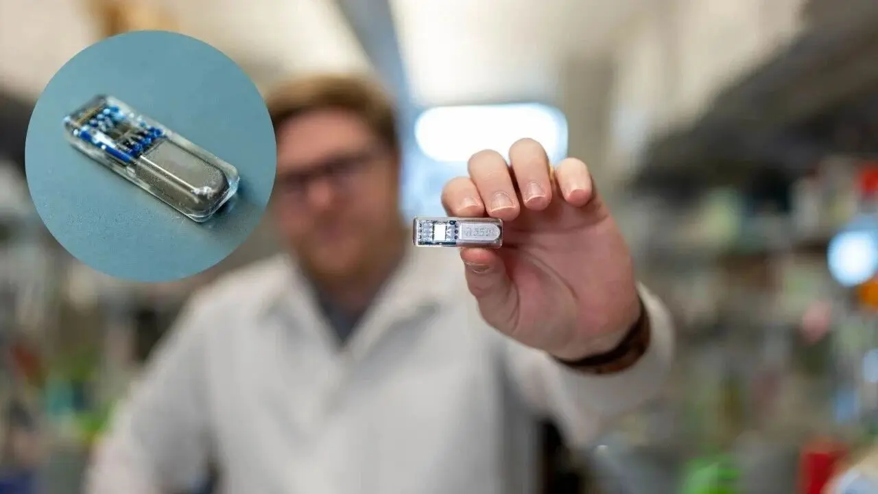 该新型植入装置,将活体细胞与可内部产氧的电子元件结合,解决了该领域长期存在的技术难题——当治疗性细胞在植入装置内聚集时,它们会竞争氧气,往往很快死亡。这既限制了药物产量,也缩短了治疗持续时间。