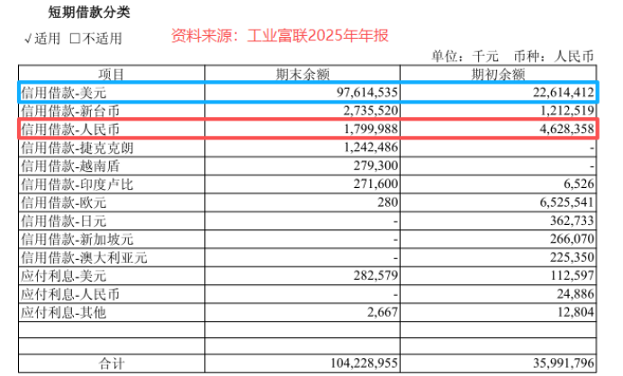 明明国内借钱的成本不高,可2025年工业富联账上的人民币借款反而下降了近28亿元。