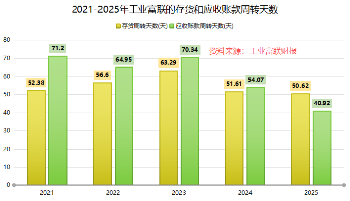 可以看到,2025年工业富联的存货周转天数在50.62天,应收账款周转天数在40.92天。